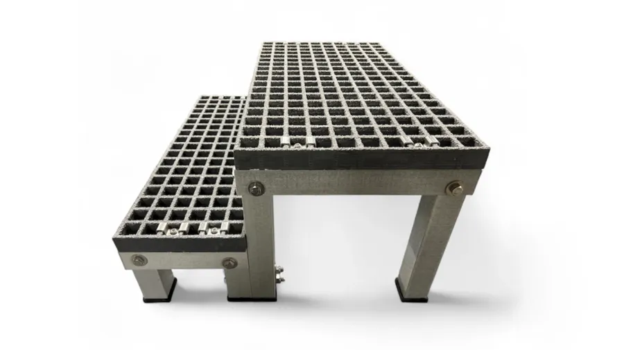 Kraty na podestach roboczych  charakteryzuje się wysokim poziomem antypoślizgowości - nawet w warunkach deszczu, oleju czy wilgoci. Dzięki temu podesty kompozytowe minimalizują ryzyko wypadków przy pracy i ułatwiają spełnienie wymogów BHP.
